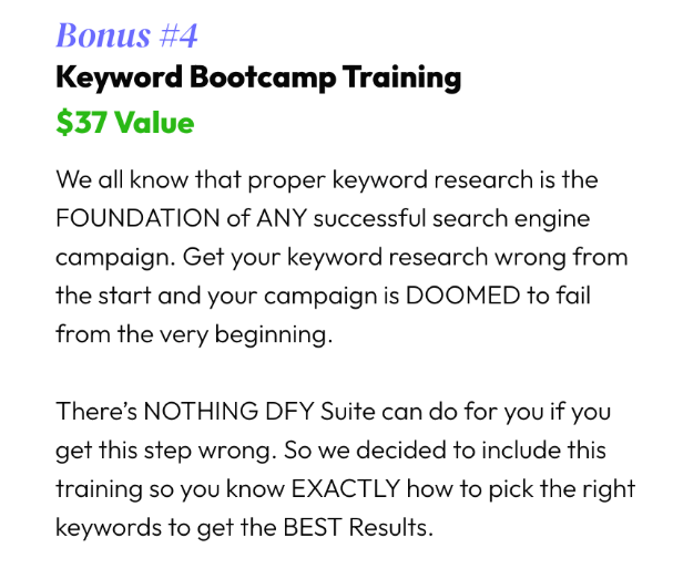 DFY Suite 7.0 is not a shortcut or ranking hack. It doesnât replace good content or smart keyword selection.
