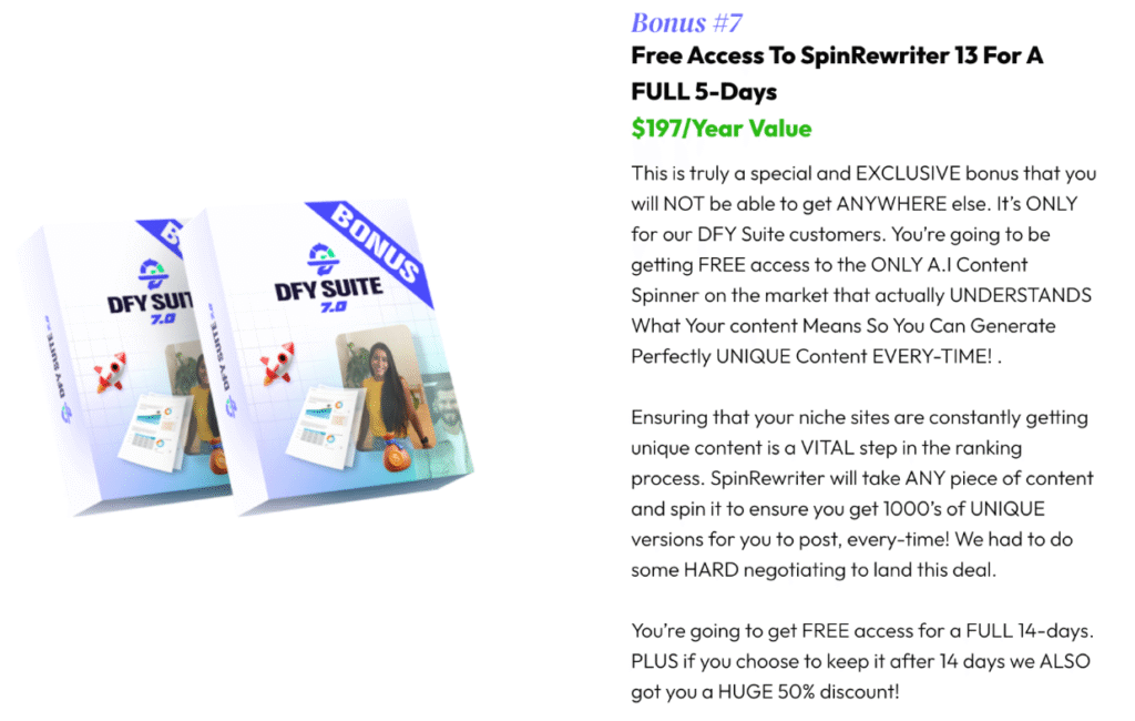 If your goal is scalable, long-term visibility without daily SEO work, DFY Suite 7.0 delivers on its promise.